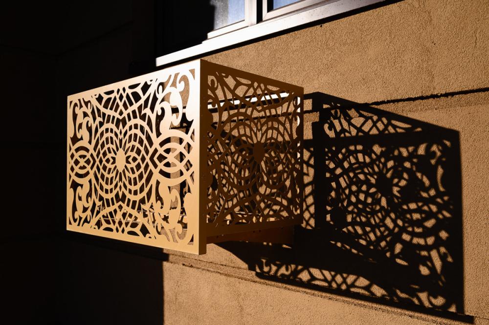 Мы производим сами, поэтому каждое изделие создаем под конкретные задачи. В основе — металл, раскроенный на лазере. Это дает четкость линий и возможность воплотить любой рисунок. После резки — полимерно-порошковая окраска в камере: можете выбрать любой цвет по RAL, чтобы решетка для кондиционера на фасаде либо сливалась со стеной, либо выступала акцентом.
