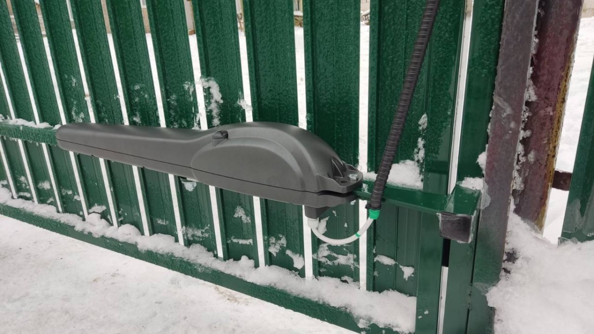 Изготовление и установка распашных ворот с автоматикой с заполнением из евроштакетника.