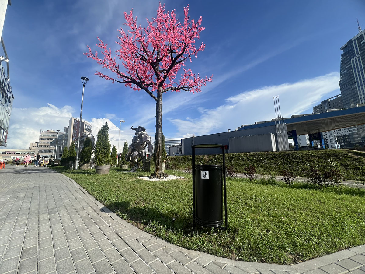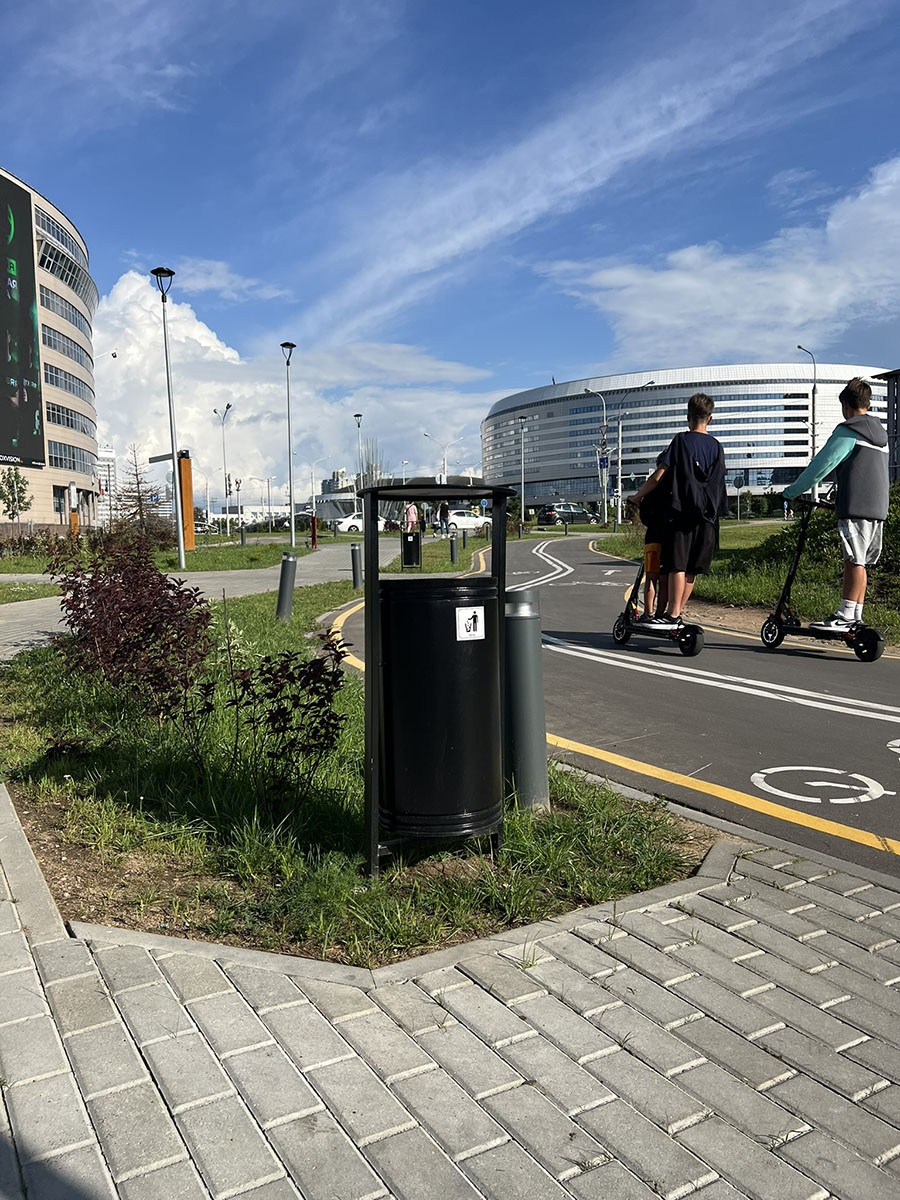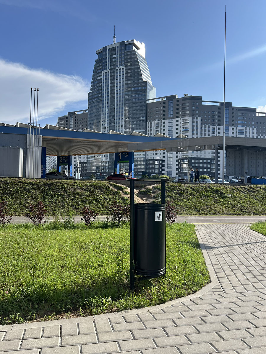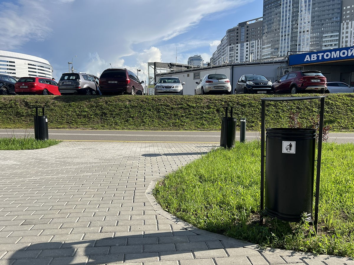 • Наши урны, индивидуально изготовленные под вкапывание, возле ТЦ Велодрайв по адресу Пр-т Победителей 102А.