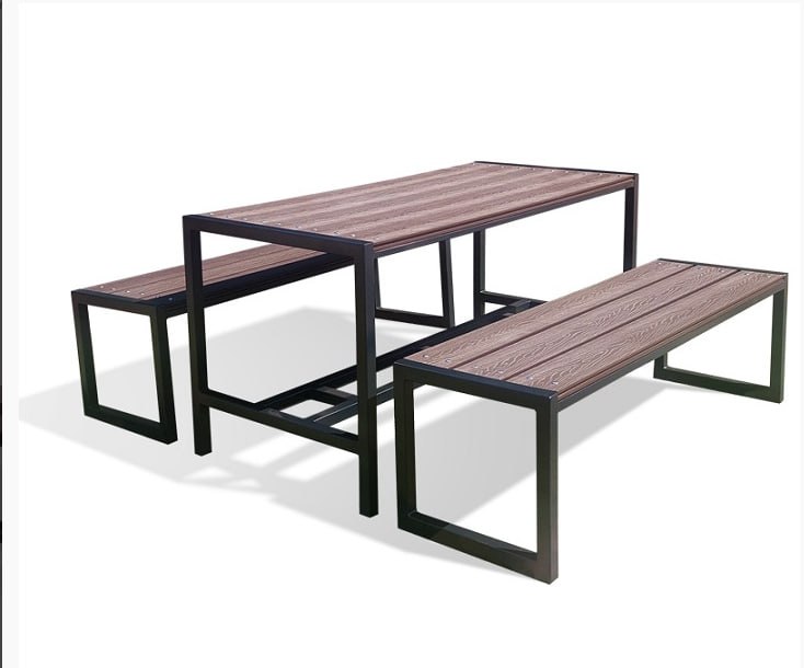 Уличную мебель “ВИКС” можно узнать по характерному признаку — наличию доски из древесно-полимерного композита (ДПК). Этот материал используется при изготовлении столешниц, сидений и различных декоративных элементов. Достоинством ДПК является его влагостойкость, устойчивость к морозам, прочность и эстетический внешний вид. В отличие от массива дерева, он не требует особого ухода, не выгорает на солнце.