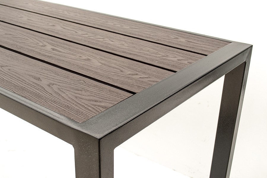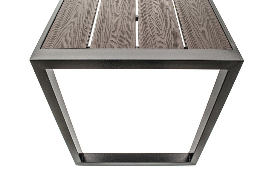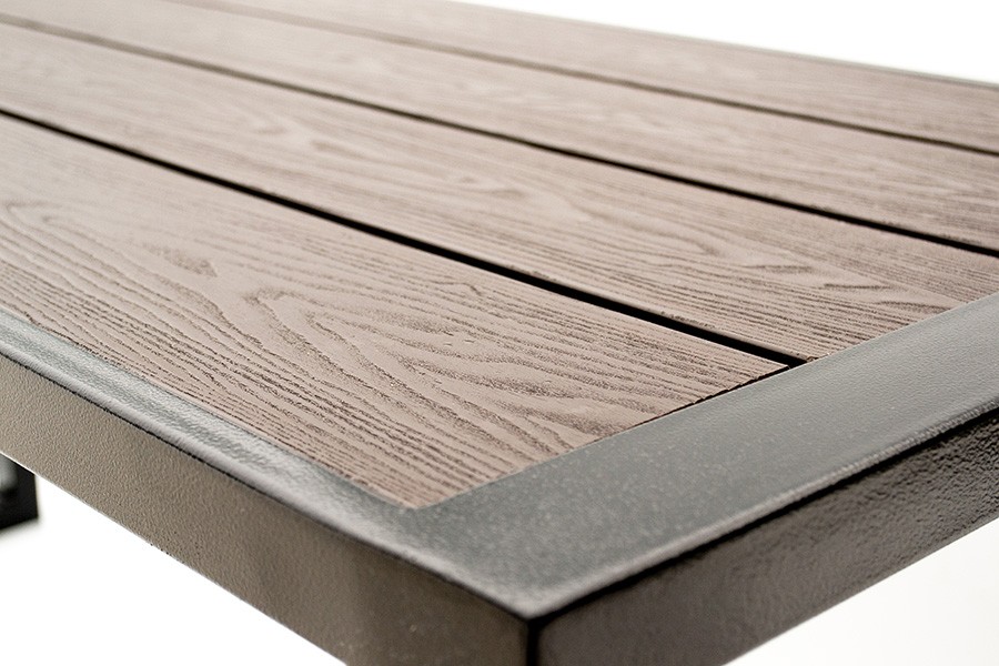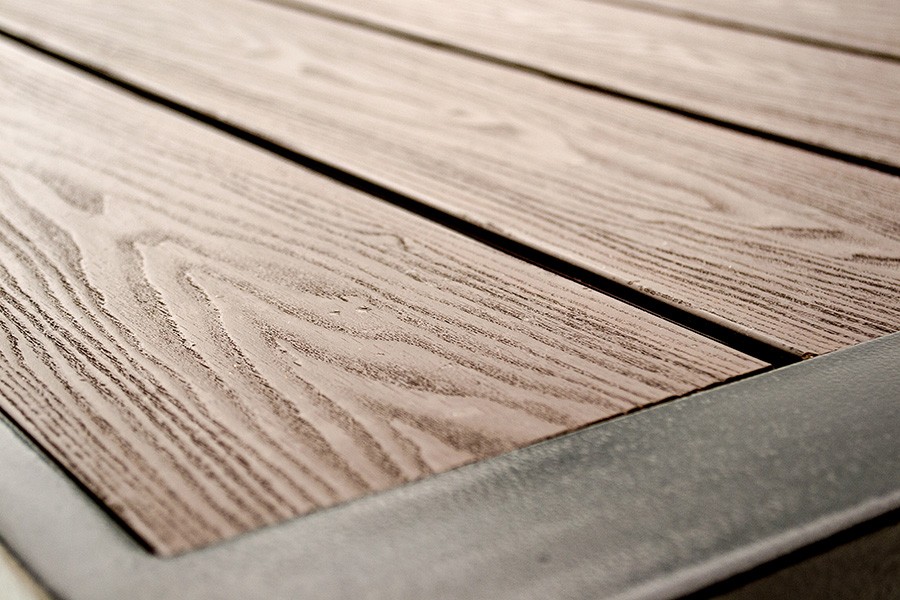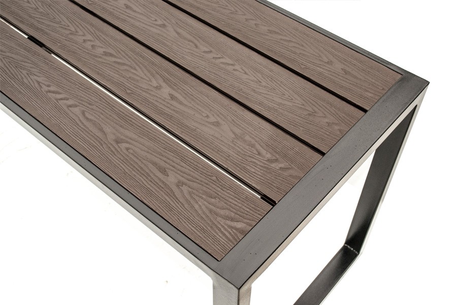 Уличную мебель “ВИКС” можно узнать по характерному признаку — наличию доски из древесно-полимерного композита (ДПК). Этот материал используется при изготовлении столешниц, сидений и различных декоративных элементов. Достоинством ДПК является его влагостойкость, устойчивость к морозам, прочность и эстетический внешний вид. В отличие от массива дерева, он не требует особого ухода, не выгорает на солнце.