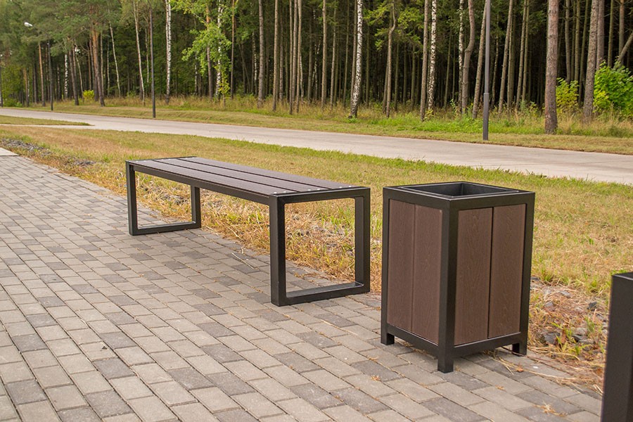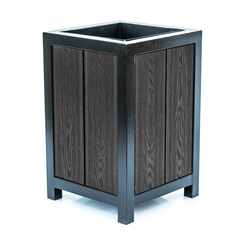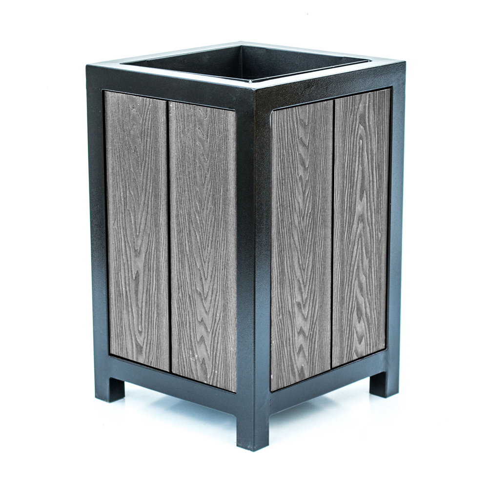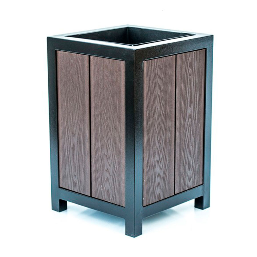 Уличную урну “ВИКС” можно узнать по характерному признаку — наличию доски из древесно-полимерного композита (ДПК). Этот материал используется при изготовлении столешниц, сидений и различных декоративных элементов. Достоинством ДПК является его влагостойкость, устойчивость к морозам, прочность и эстетический внешний вид. В отличие от массива дерева, он не требует особого ухода, не выгорает на солнце.