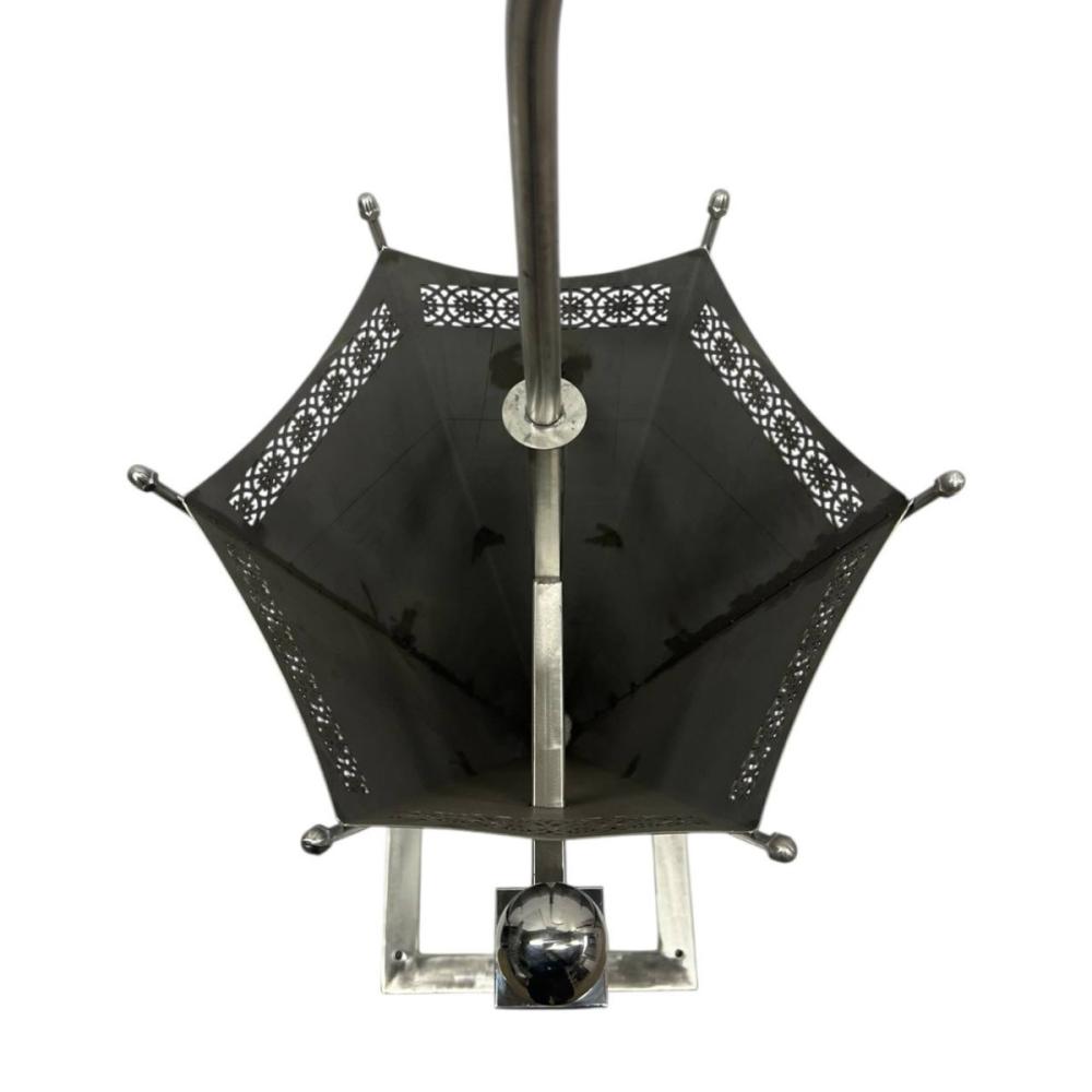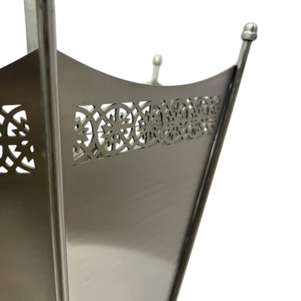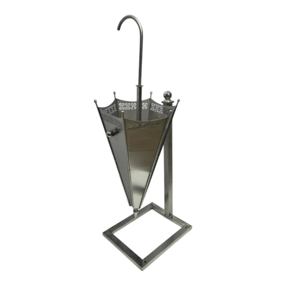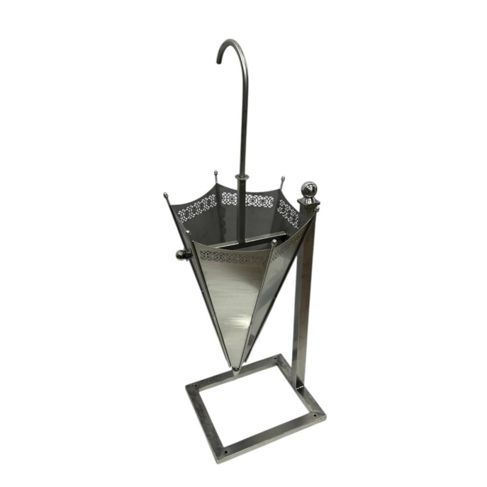 Каркас уличной урны выполнен из профильной нержавеющей трубы нескольких сечений (40×40 мм, 40×20 мм и 20×20 мм), что обеспечивает прочность и устойчивость конструкции при минимальном весе. Каркас бака стилизован под зонт и изготовлен из листовой нержавеющей стали; все элементы и декоративный узор вырезаны на лазерном станке, что даёт ровные кромки и аккуратный внешний вид.