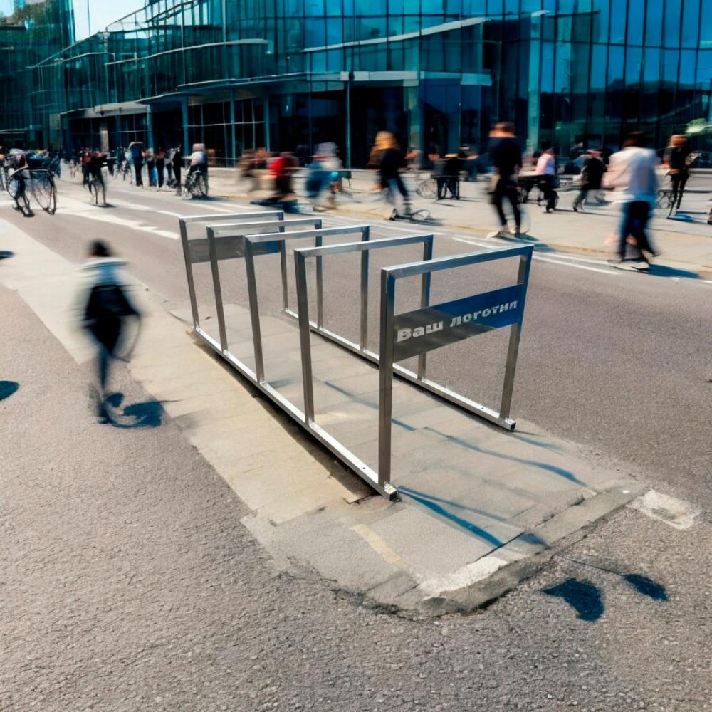Возможны варианты парковок с логотипом компании, фирменного цвета, различных форм, рассчитанных на любое количество велосипедов.