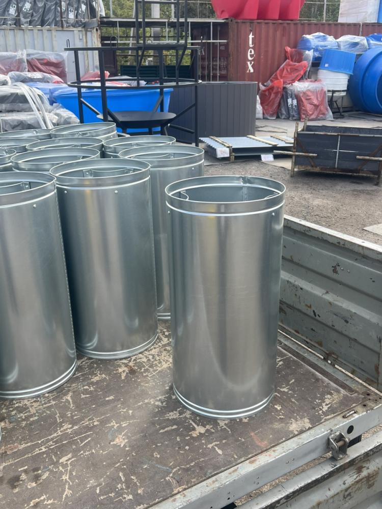 - Материал: сталь с цинковым покрытием (оцинкованные) — устойчивость к ржавчине и внешним воздействиям. По желанию заказчика, мы изготовим вставку в урну из нержавеющей стали.