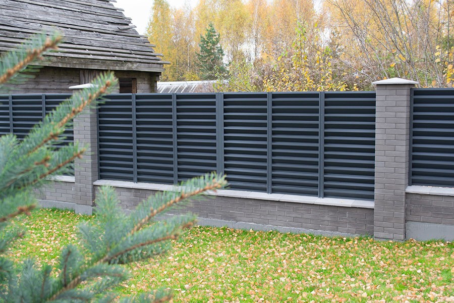 Одним из главных преимуществ металлического забора данного типа является его способность обеспечивать циркуляцию воздуха, демонстрируя при этом высокую устойчивость к воздействию ветра. Это достигается благодаря специфической конструкции ламелей, которые устанавливаются под определенным углом, что позволяет потоку воздуха свободно проходить через щели между планками.
