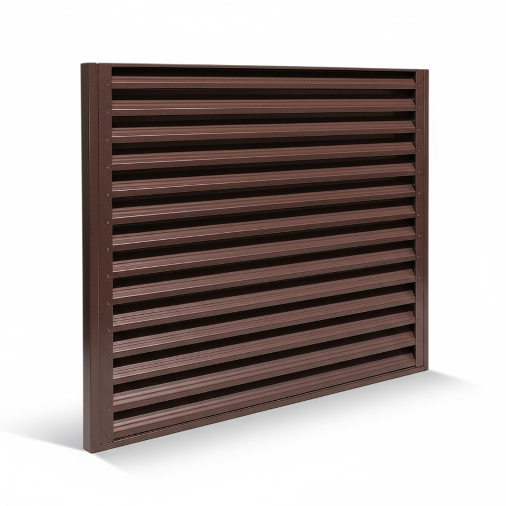 Одним из главных преимуществ металлического забора данного типа является его способность обеспечивать циркуляцию воздуха, демонстрируя при этом высокую устойчивость к воздействию ветра. Это достигается благодаря специфической конструкции ламелей, которые устанавливаются под определенным углом, что позволяет потоку воздуха свободно проходить через щели между планками.